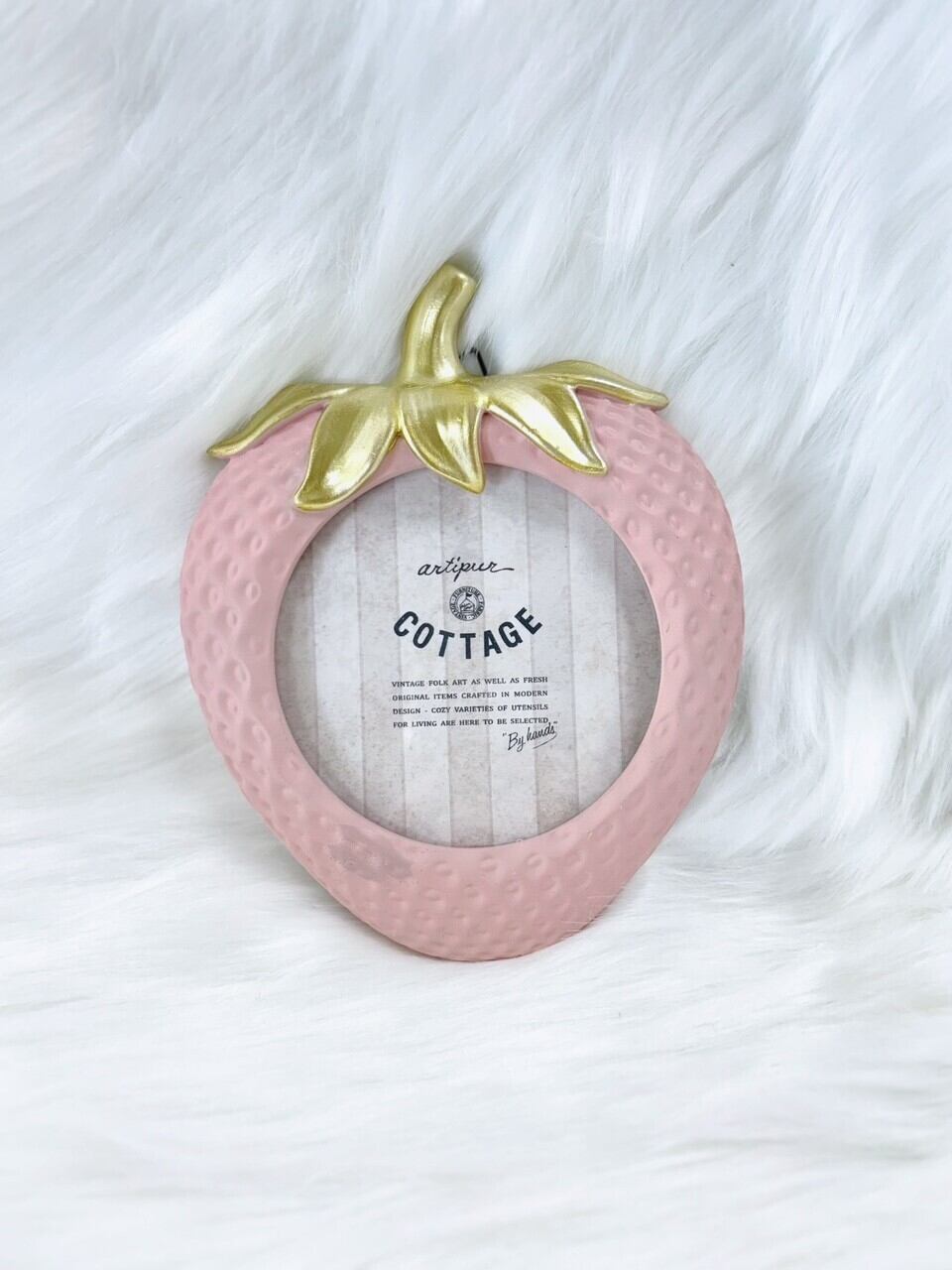 イチゴ型の可愛らしい、アンティーク調のフォトフレーム。