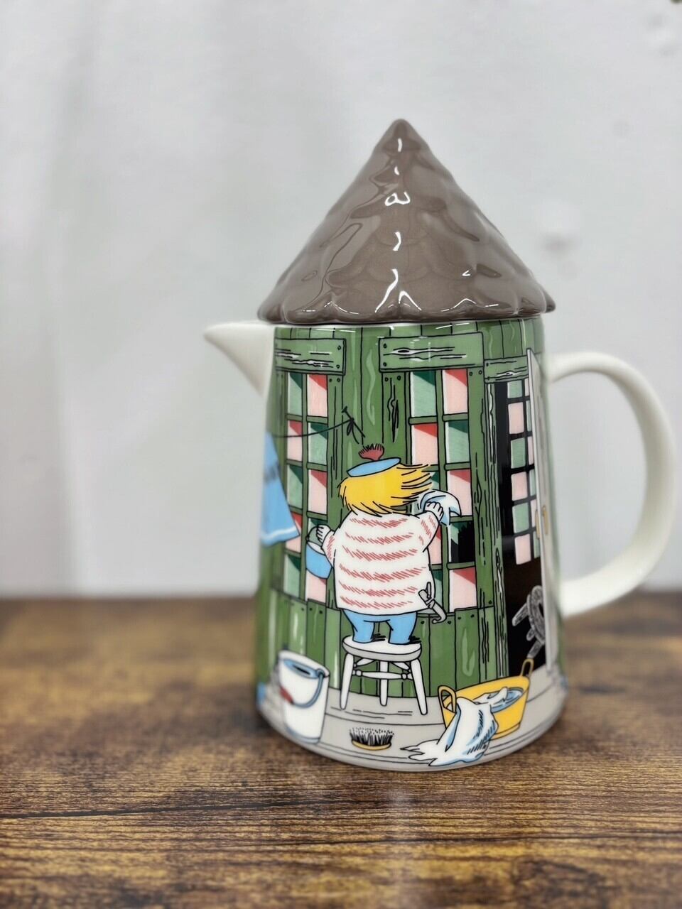 窓ガラスを掃除するトゥーティッキが描かれています。